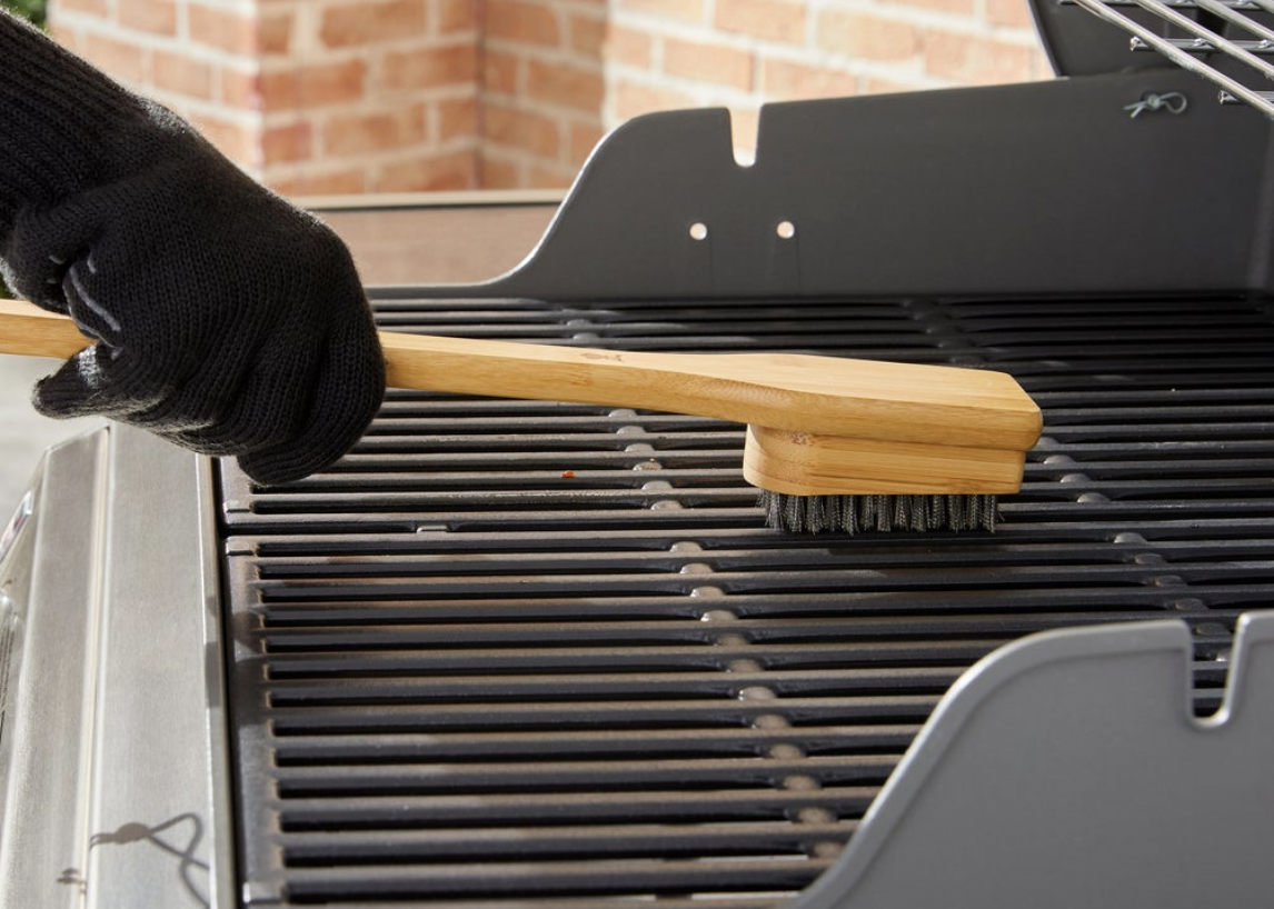 Rengör grillgallret med grillborsten medan grillen fortfarande är varm så slipper du lägga onödig tid på rengöring senare och dessutom håller både gallret och grillborsten längre.