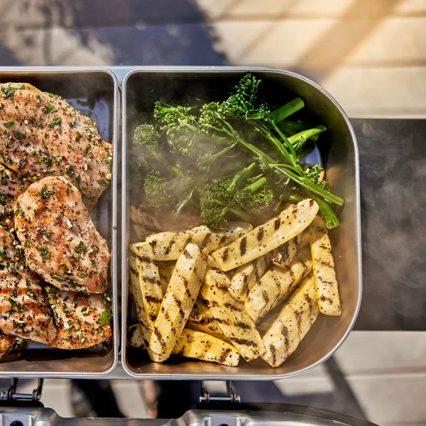 Lägg till ytterligare grillmöjligheter till din Lumin Compact elgrill med Webers multifunktionskit i fyra delar. Behållaren med dubbla funktioner utökar grillens ång- och rökfunktion över hela tillagningsytan. Lägg bara till Weber-rökspån för low-and-slow-grillade favoriter såsom revbensspjäll, fläskkarré och bringa. Du kommer även kunna ångkoka färska grönsaker, hel fisk eller hummer. Setets två värmehållande fat håller den färdiggrillande maten vid exakt rätt temperatur i timmar – utan att brännas vid eller torka ut. När middagen är över är det bara att ställa varmhållningsfaten i diskmaskinen.