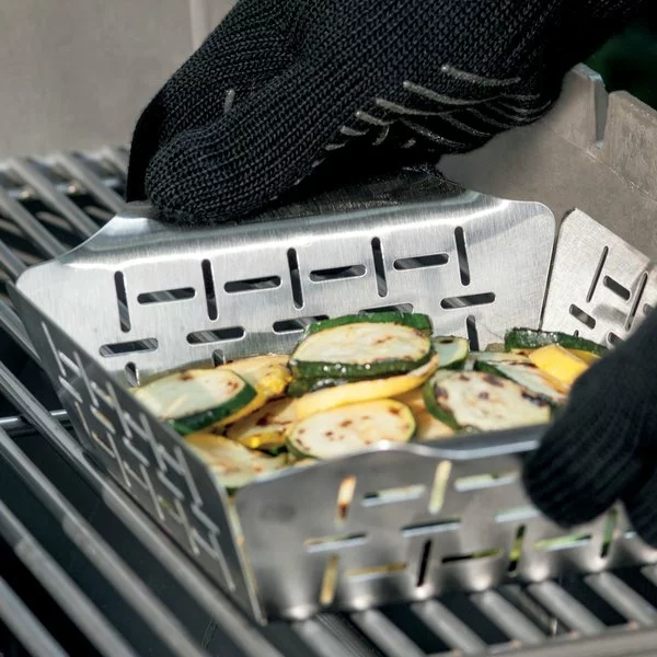 Smart grönsaksform till din grill som gör att du kan laga alla möjliga typer av grönsakstillbehör. Prova till exempel med fyllda tomater, sparris inrullade i bacon o.s.v. Tål maskindisk. tillverkad i rostfritt stål rostfritt stål.